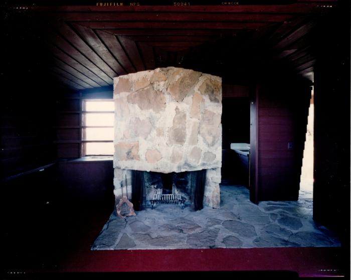 Interior View Showing Fireplace, Retreat for Eleanor Oboler ("Eleanor's Retreat")