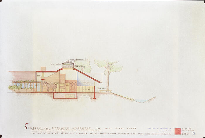 Presentation Drawing: Section of Stables, Stables and Manager's Apartment, House and Estate Buildings for Diana Dodge ("Ponds and Pines")