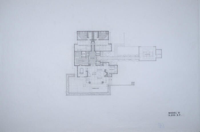 Drawing: Floor Plan of Model G, Hillside Villas for the Lyle Anderson Corporation at Desert Highlands