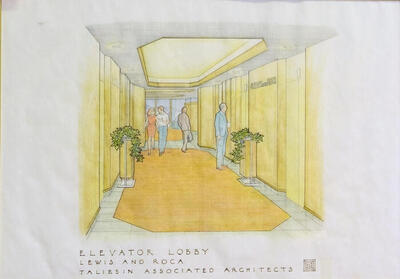 Drawing: Perspective View of Elevator Lobby, Law Offices for Lewis and Roca, Two Renaissance Square (1988)