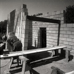 Construction View With Worker, Studio for Mrs. Henry R. Luce at Arizona Biltmore Estates
