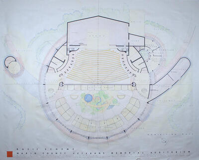 Drawing: Auditorium Plan for Basic Scheme, Marin County Veterans Memorial Auditorium, Marin County Civic Center